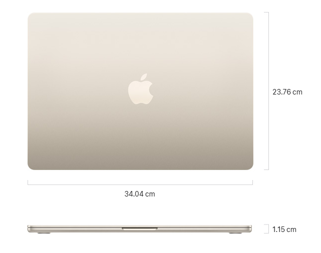 ※1 スクリーンのサイズは対角線を測ったものです。13インチと15インチMacBook Airのディスプレイは上部の隅が丸みを帯びています。標準的な長方形として対角線の長さを測った場合のスクリーンのサイズは13.6インチと15.3インチです(実際の表示領域はこれより小さくなります)。