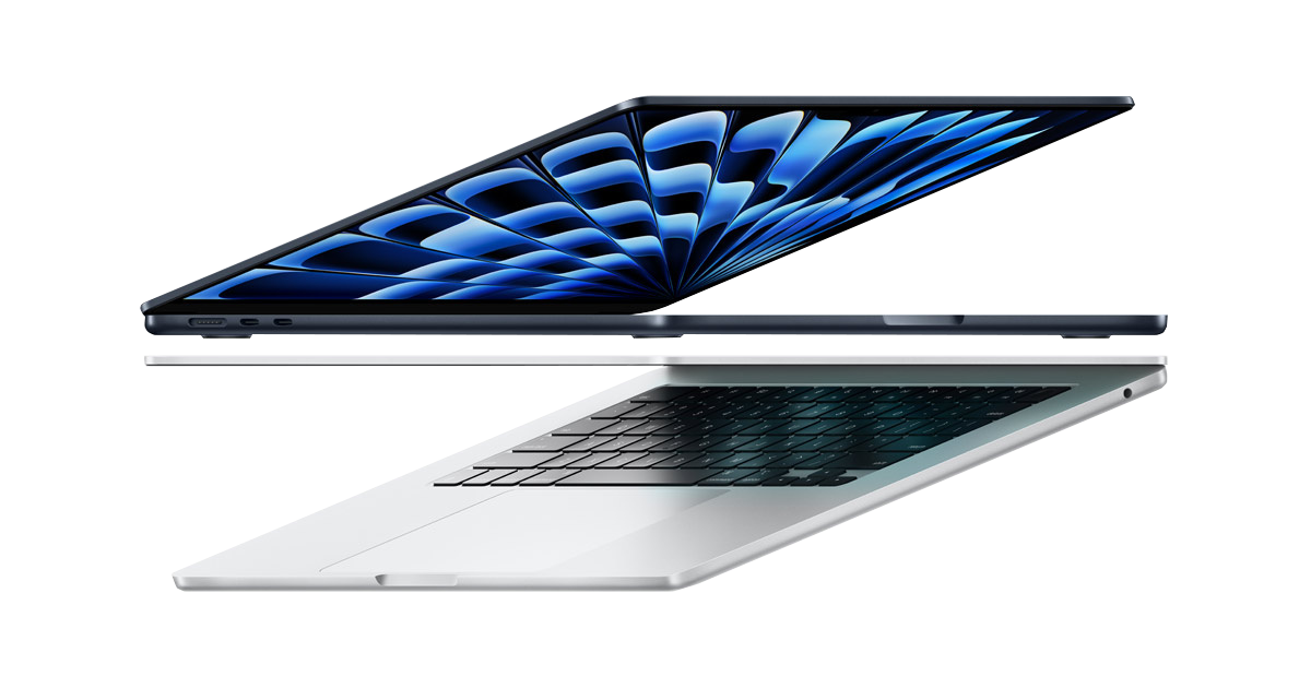 ※2 8コアCPU、10コアGPUのApple M3搭載15インチMacBook Air試作モデルと、8コアCPU、8コアGPUのApple M3搭載13インチMacBook Air試作モデルを使用し、2024年1月にAppleが実施したテスト結果によります。すべてのシステムに8GBのRAMと256GBのSSDを実装。8GBのRAMと256GBのSSDを装備した8コアCPU、8コアGPUのApple M2搭載13インチMacBook Air試作モデルを使用し、2022年5月にAppleが実施したテスト結果によります。ワイヤレスインターネットテストでは、ディスプレイの明るさを最低輝度から8回クリックした状態で、25の一般的なウェブサイトを閲覧し、バッテリー駆動時間を測定しました。Apple TVアプリのムービー再生テストでは、ディスプレイの明るさを最低輝度から8回クリックした状態で、HD 1080pコンテンツを再生し、バッテリー駆動時間を測定しました。バッテリー駆動時間は使用条件と構成によって異なります。詳しくは メーカーページ をご覧ください。